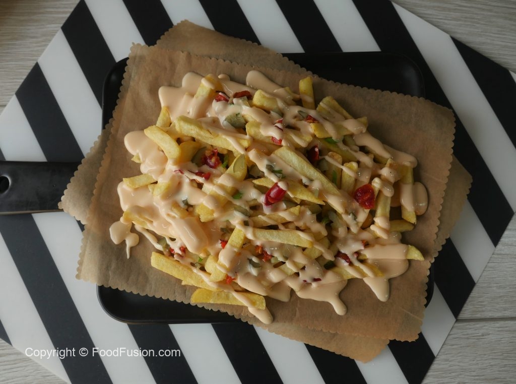 Potato fries,burger,nuggets,chicken hot shots,favoutire snacks dip sauce ka saath serve karein or as a dip sauce bhi serve ker saktay han!