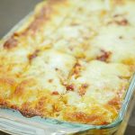 Once golden crust of mozzarella appears on the top then turn off the oven. Put baking dish aside and cut lasagna into square shape and now it’s ready to serve.