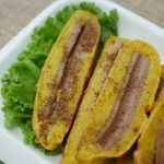 Cut lotus root from the center into two halves and take potato mixture and coat properly on lotus roots & set aside.