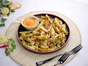 -In a bowl,add fried potatoes & coat well.