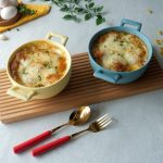 In baking dish,add egg coated macaroni,prepared cheese sauce,fresh parsley,chicken crispy shots,prepared cheese sauce,cheddar cheese,mozzarella cheese and fresh parsley.