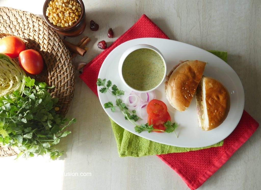 Blender mein hara dhania,lehsan,hari mirch,sabut lal mirch,podina,tatri,namak,zeera,lemon juice aur dahi dal ker ache tarhan blend ker lein.Bun kabab chutney tayyar hai.