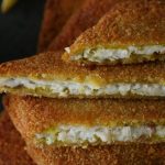 Now coat marinated fish fillets into breadcrumbs then dip into beaten eggs and again coat in breadcrumbs and shape into square shape.