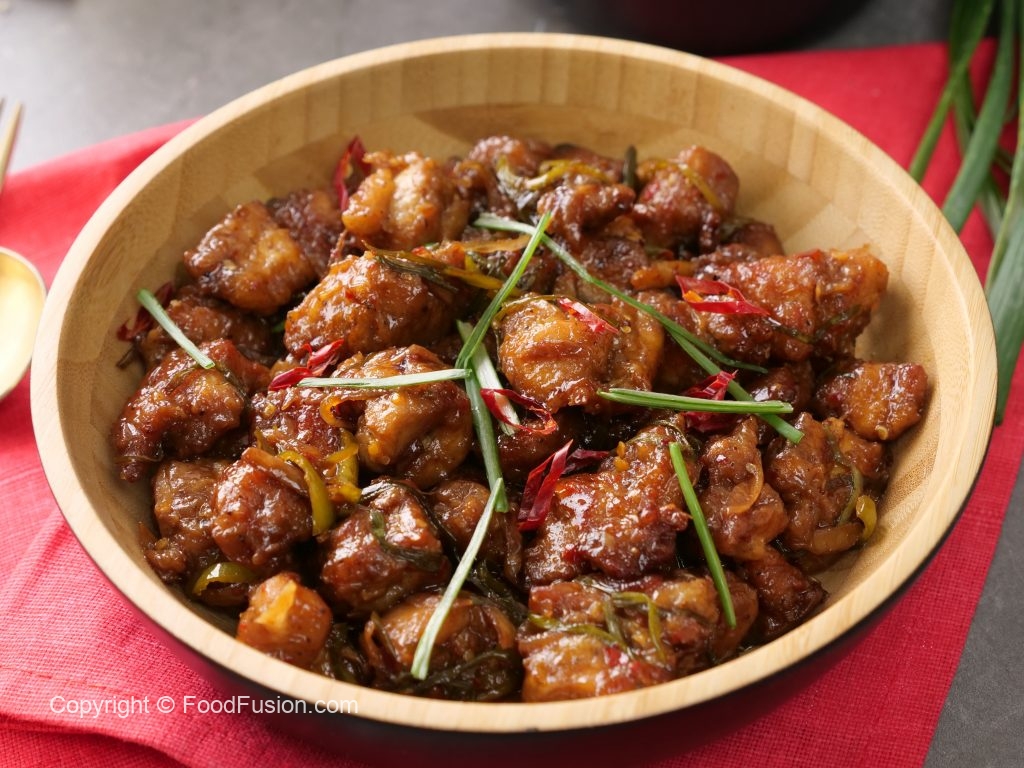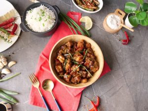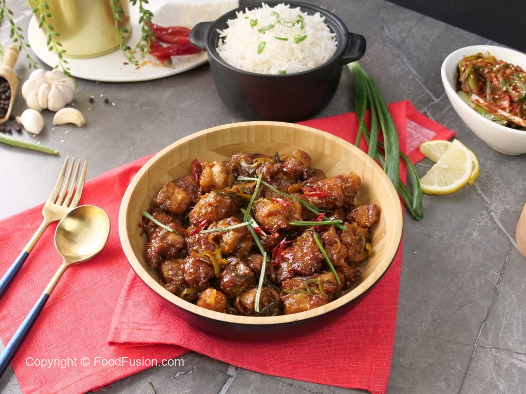 -Garnish with spring onion leaves,dried red chilli & serve with boiled rice!