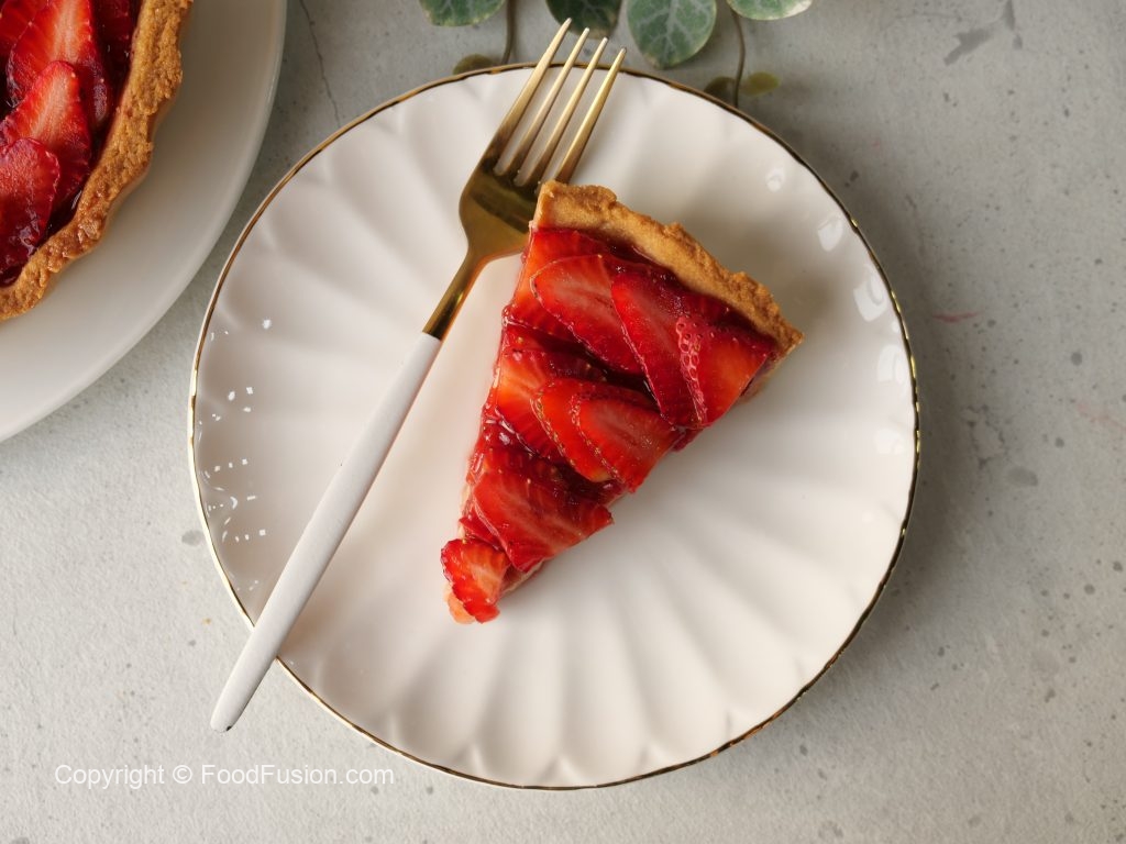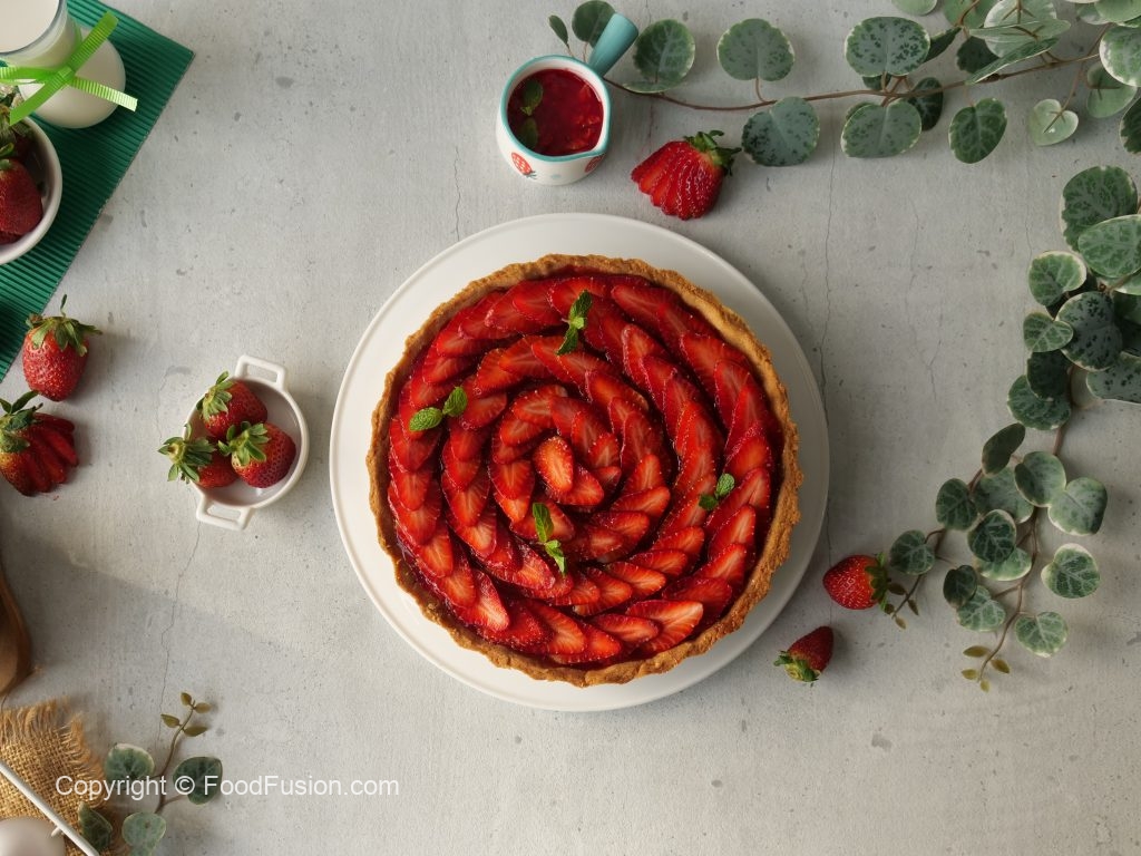 -Tart base per tayyar custard dal ker pheela lein aur 10 minutes kliya refrigerate ker lein.