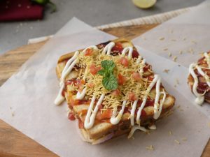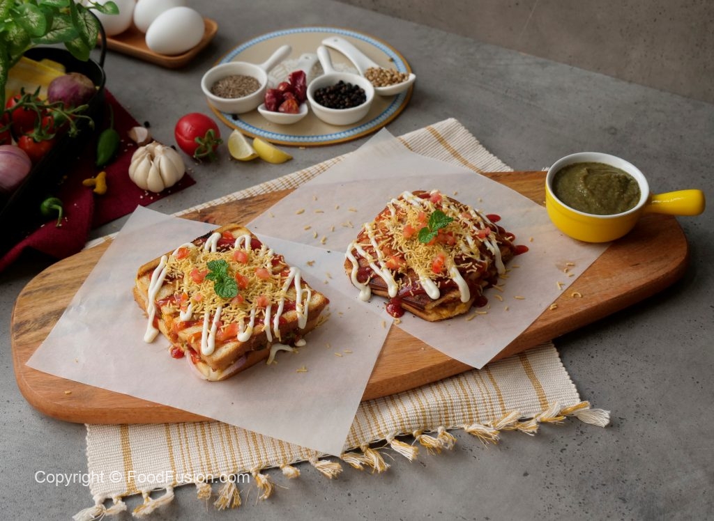 Place sandwich on a grill pan & grill from both sides until golden brown (makes 3-4).