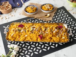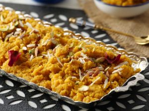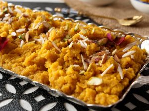 In a grinder,add green cardamom,dry dates,almonds,cashew nuts & grind to make powder & set aside.