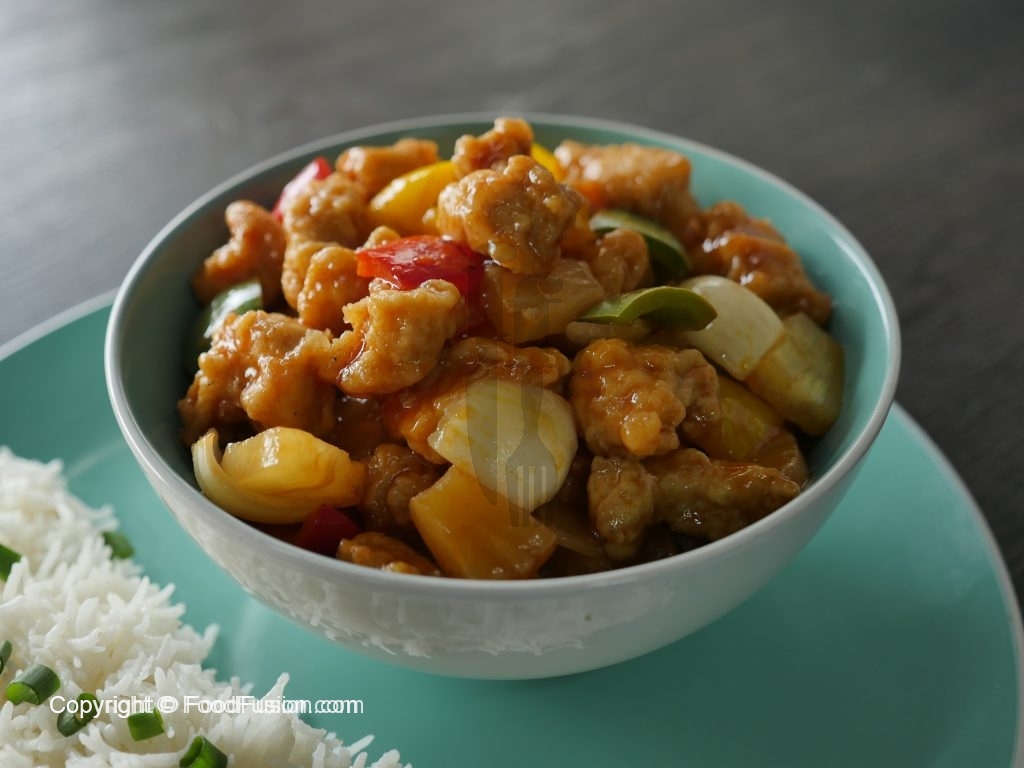 Us he karhai mein oil,tomato ketchup,brown sugar,soy sauce,namak,pineapple juice aur sirka dal ker ache tarhan mix ker lein.