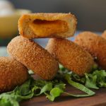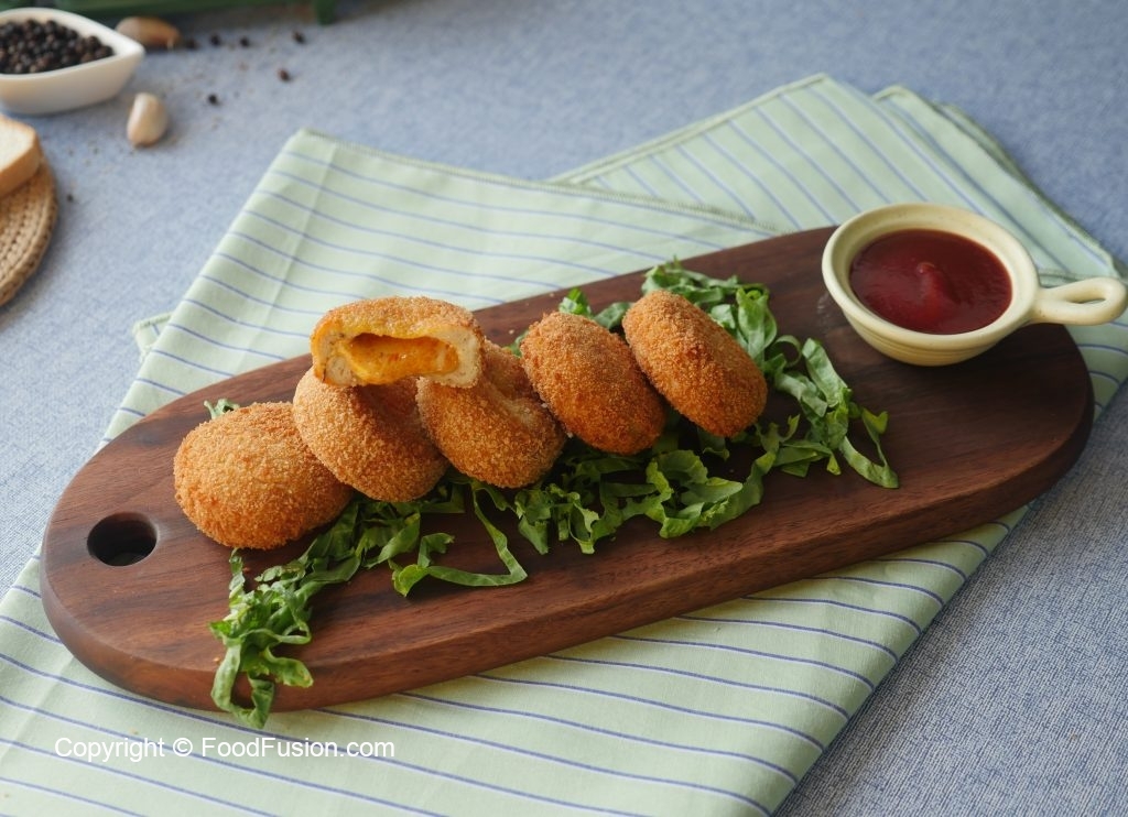 Coat in all-purpose flour then dip into beaten eggs and coat with breadcrumbs then shape into round shape (makes 24-25).