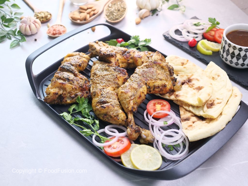 -Place a grill rack on stove & char grill chicken on direct flame for 1-2 minutes & apply cooking oil in between.