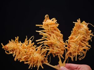 -Air fry in preheated air fryer at 200C, spray oil on thread chicken sticks & air fry for 10-12 minutes (flip in between).