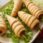 Strip lein aur pani laga ker green chili per twist ker ka lapeet lein (makes 6-8) aur 15 minutes kliya freeze ker lein.