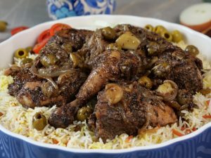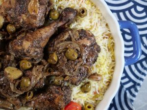 -Serve za’atar chicken with prepared saffron rice!
